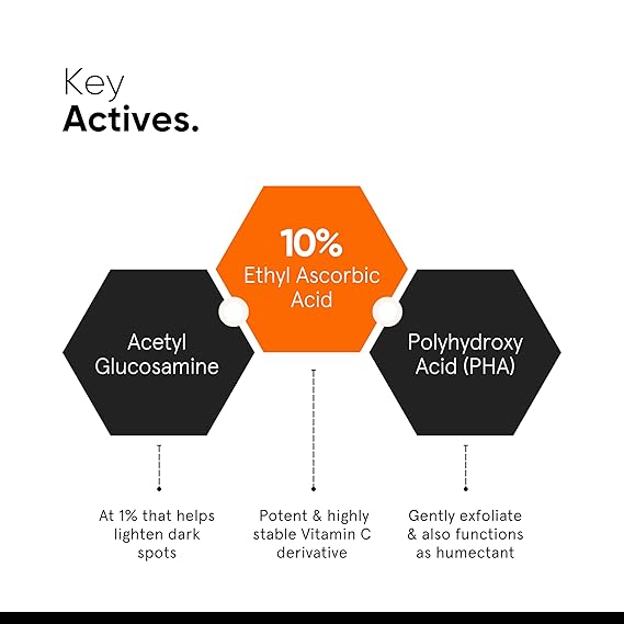 • A POTENT STABLE VITAMIN C FACE SERUM: Not all Vitamin C serums are made equal! This serum is is made with a stable Vitamin C derivative, 10% Ethyl Ascorbic Acid that is closest to pure Vitamin C (L-Ascorbic Acid) in molecular size and weight. With similar molecule size and 86% pure Vitamin C content it delivers maximum benefits of Vitamin C without getting bad or losing efficacy till the last drop (unlike other Vitamin C serums).